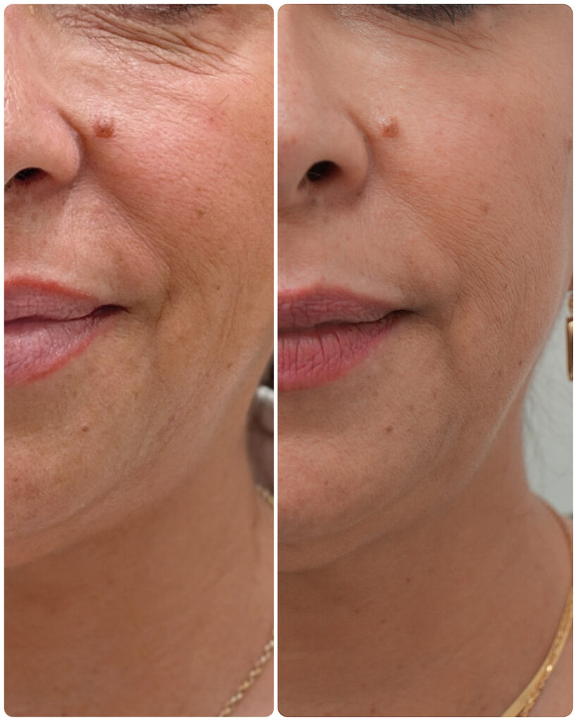 Diminish the appearance of crow’s feet, forehead lines, and smile lines. Stimulate collagen production for smoother, more youthful skin texture.